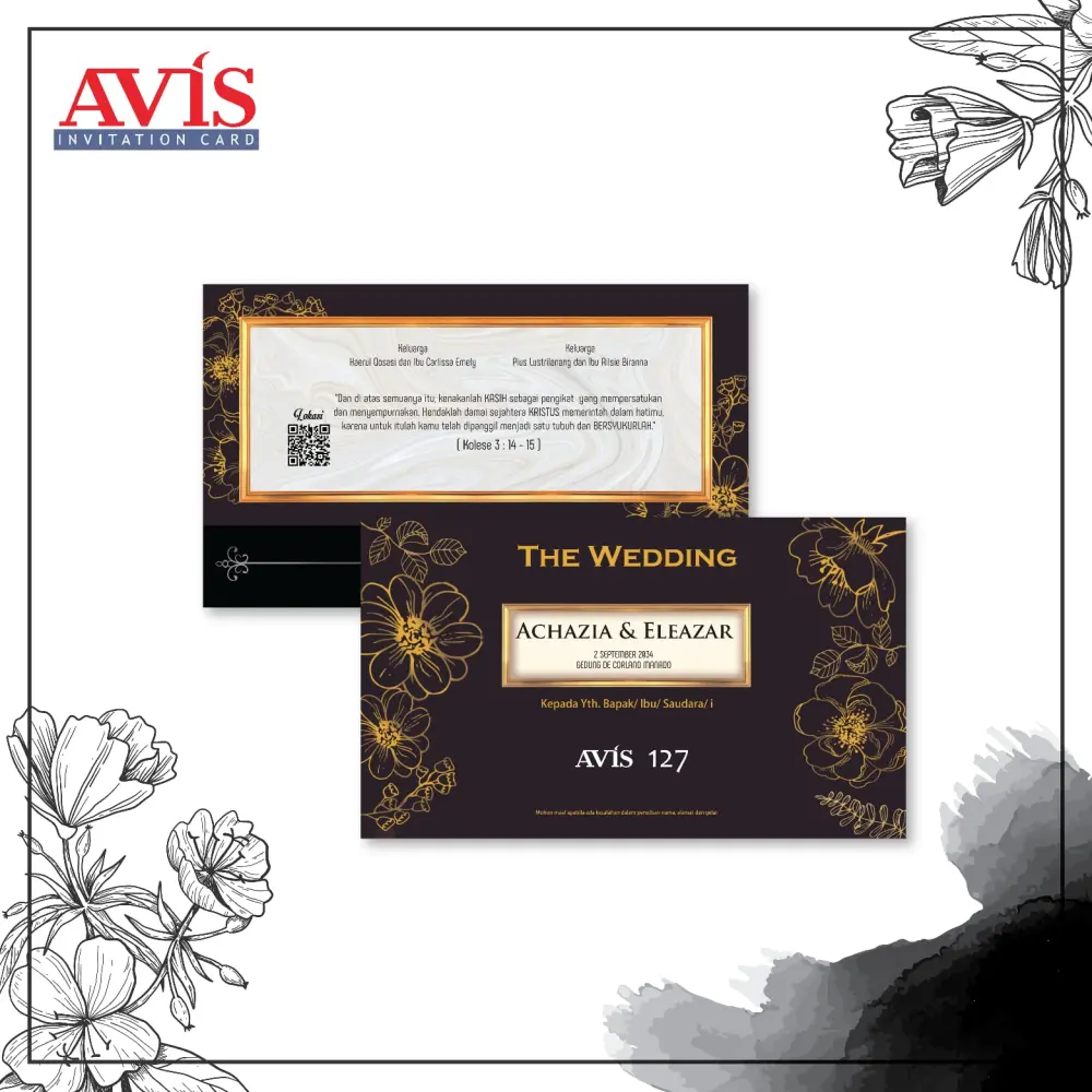 Asteria Exclusive Undangan Pernikahan Bunga Line Art Hitam Emas
